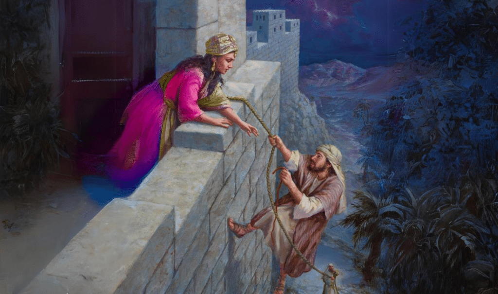 În conversația dintre iscoade și Rahav, prima imagine care apare inevitabil în minte este Paștele de la exod. Atunci, ca să fie protejați, israeliții trebuiau să rămână în casă și să marcheze stâlpii ușii și pragul cu sângele mielului de jertfă. „Sângele vă va sluji ca semn pe casele unde veţi fi. Eu voi vedea sângele şi voi trece pe lângă voi, aşa că nu vă va nimici nicio urgie atunci când voi lovi ţara Egiptului” (Exodul 12:13; vezi și 12:22,23).